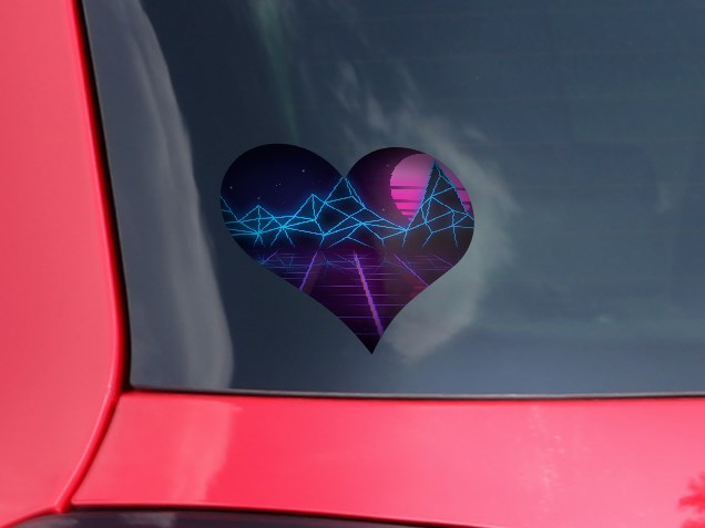 Synth Mountains - I Heart Love Car Window Decal 6.5 x 5.5 inches