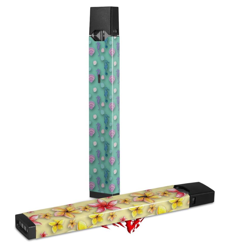 Skin Decal Wrap 2 Pack for Juul Vapes Seahorses and Shells Seafoam Green JUUL NOT INCLUDED