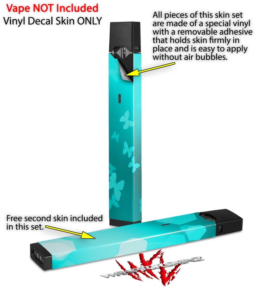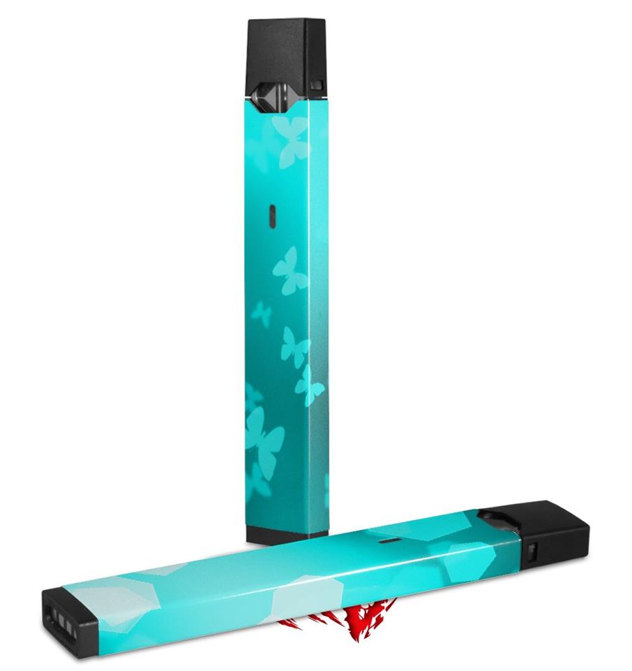Skin Decal Wrap 2 Pack for Juul Vapes Bokeh Butterflies Neon Teal JUUL NOT INCLUDED