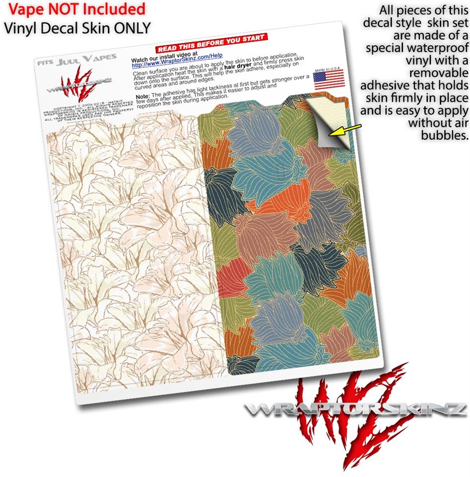 WraptorSkinz® skin wraps are printed using superb photo quality designs and vibrant colors printed with special fade resistant inks that last even in direct sun for years. WraptorSkinz are a composite of two layers of commercial grade materials. The bottom layer is a soft, flexible vinyl with a special removable adhesive that is easily positioned, applied without air bubbles. Next we print the bottom layer with UV protected, fade resistant inks that deliver superb photo quality designs in vibrant colors. Finally we bond a professional grade laminate over the entire skin adding a glossy protective finish. This product is not affiliated with or endorsed by the Juul brand.