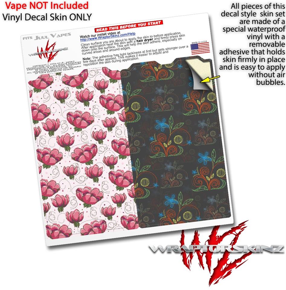Skin Decal Wrap 2 Pack for Juul Vapes Flowers Pattern 16 JUUL NOT INCLUDED