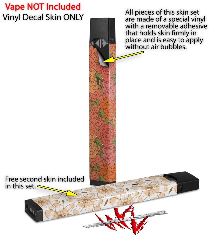 Skin Decal Wrap 2 Pack for Juul Vapes Flowers Pattern Roses 06 JUUL NOT INCLUDED