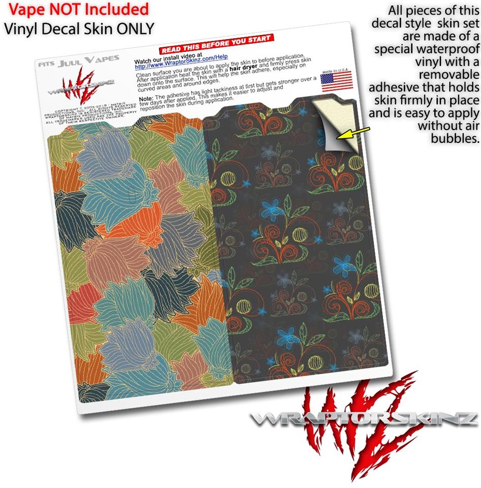 Skin Decal Wrap 2 Pack for Juul Vapes Flowers Pattern 03 JUUL NOT INCLUDED