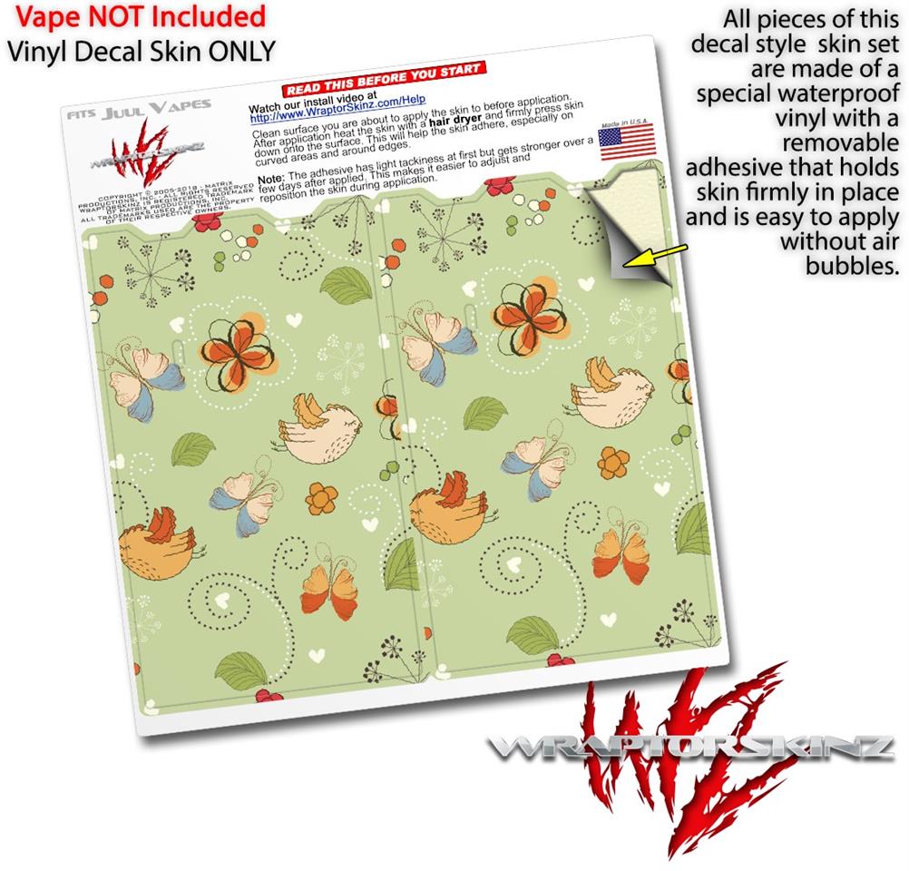 Skin Decal Wrap 2 Pack for Juul Vapes Birds Butterflies and Flowers JUUL NOT INCLUDED
