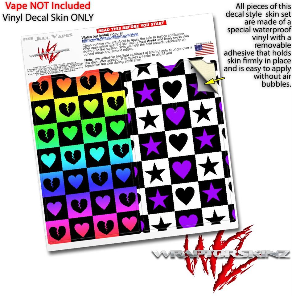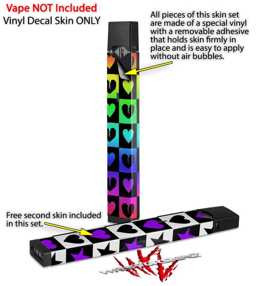Skin Decal Wrap 2 Pack for Juul Vapes Love Heart Checkers Rainbow JUUL NOT INCLUDED