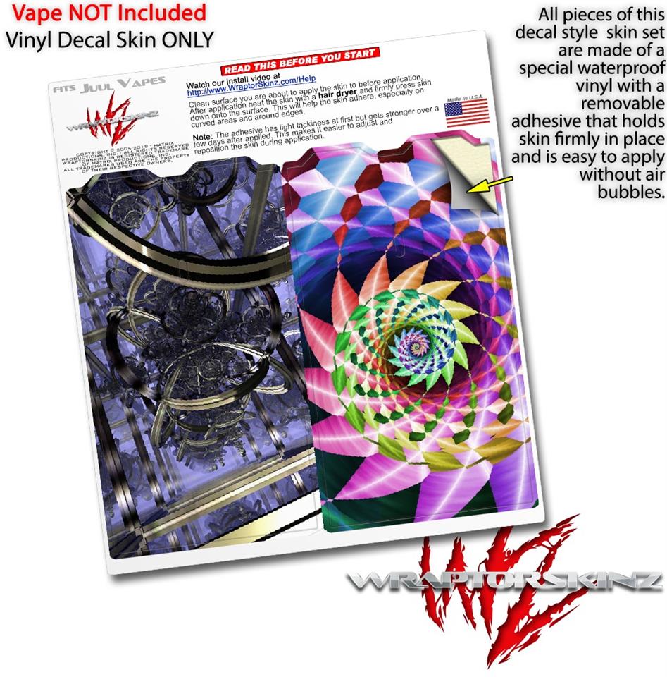 WraptorSkinz® skin wraps are printed using superb photo quality designs and vibrant colors printed with special fade resistant inks that last even in direct sun for years. WraptorSkinz are a composite of two layers of commercial grade materials. The bottom layer is a soft, flexible vinyl with a special removable adhesive that is easily positioned, applied without air bubbles. Next we print the bottom layer with UV protected, fade resistant inks that deliver superb photo quality designs in vibrant colors. Finally we bond a professional grade laminate over the entire skin adding a glossy protective finish. This product is not affiliated with or endorsed by the Juul brand.