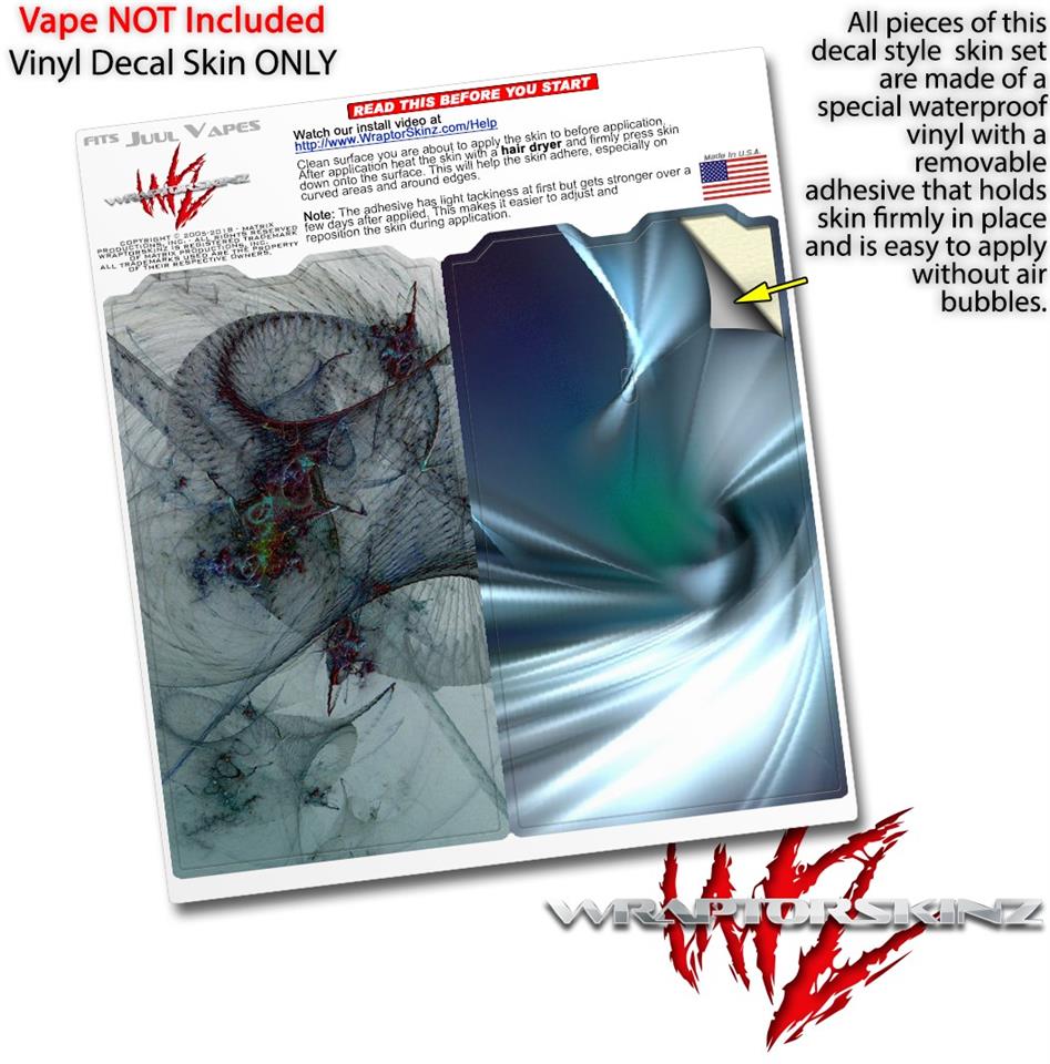 WraptorSkinz® skin wraps are printed using superb photo quality designs and vibrant colors printed with special fade resistant inks that last even in direct sun for years. WraptorSkinz are a composite of two layers of commercial grade materials. The bottom layer is a soft, flexible vinyl with a special removable adhesive that is easily positioned, applied without air bubbles. Next we print the bottom layer with UV protected, fade resistant inks that deliver superb photo quality designs in vibrant colors. Finally we bond a professional grade laminate over the entire skin adding a glossy protective finish. This product is not affiliated with or endorsed by the Juul brand.