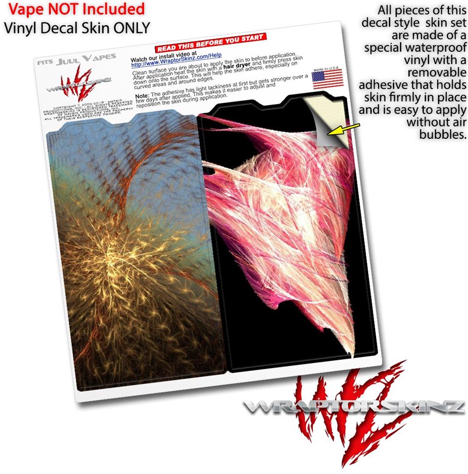 WraptorSkinz® skin wraps are printed using superb photo quality designs and vibrant colors printed with special fade resistant inks that last even in direct sun for years. WraptorSkinz are a composite of two layers of commercial grade materials. The bottom layer is a soft, flexible vinyl with a special removable adhesive that is easily positioned, applied without air bubbles. Next we print the bottom layer with UV protected, fade resistant inks that deliver superb photo quality designs in vibrant colors. Finally we bond a professional grade laminate over the entire skin adding a glossy protective finish. This product is not affiliated with or endorsed by the Juul brand.