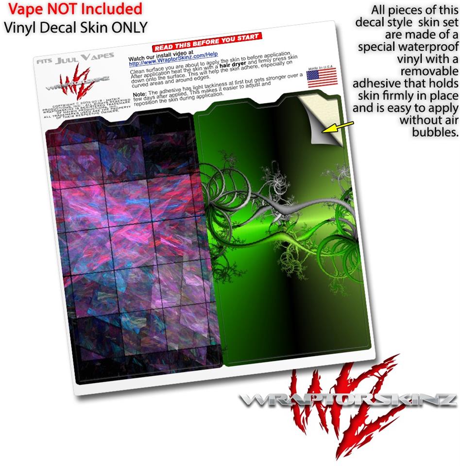 WraptorSkinz® skin wraps are printed using superb photo quality designs and vibrant colors printed with special fade resistant inks that last even in direct sun for years. WraptorSkinz are a composite of two layers of commercial grade materials. The bottom layer is a soft, flexible vinyl with a special removable adhesive that is easily positioned, applied without air bubbles. Next we print the bottom layer with UV protected, fade resistant inks that deliver superb photo quality designs in vibrant colors. Finally we bond a professional grade laminate over the entire skin adding a glossy protective finish. This product is not affiliated with or endorsed by the Juul brand.