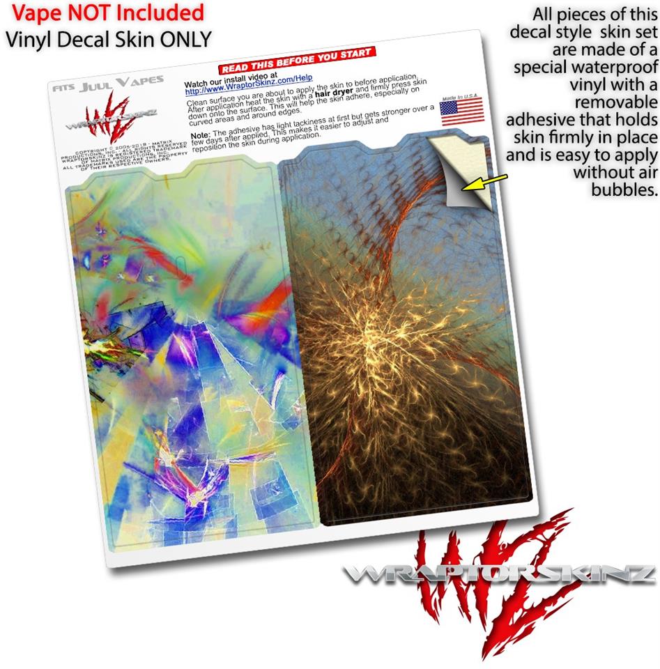 WraptorSkinz® skin wraps are printed using superb photo quality designs and vibrant colors printed with special fade resistant inks that last even in direct sun for years. WraptorSkinz are a composite of two layers of commercial grade materials. The bottom layer is a soft, flexible vinyl with a special removable adhesive that is easily positioned, applied without air bubbles. Next we print the bottom layer with UV protected, fade resistant inks that deliver superb photo quality designs in vibrant colors. Finally we bond a professional grade laminate over the entire skin adding a glossy protective finish. This product is not affiliated with or endorsed by the Juul brand.