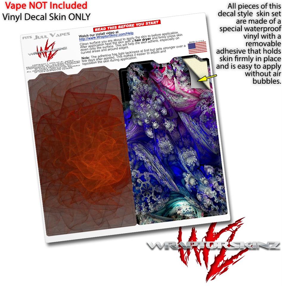 WraptorSkinz® skin wraps are printed using superb photo quality designs and vibrant colors printed with special fade resistant inks that last even in direct sun for years. WraptorSkinz are a composite of two layers of commercial grade materials. The bottom layer is a soft, flexible vinyl with a special removable adhesive that is easily positioned, applied without air bubbles. Next we print the bottom layer with UV protected, fade resistant inks that deliver superb photo quality designs in vibrant colors. Finally we bond a professional grade laminate over the entire skin adding a glossy protective finish. This product is not affiliated with or endorsed by the Juul brand.