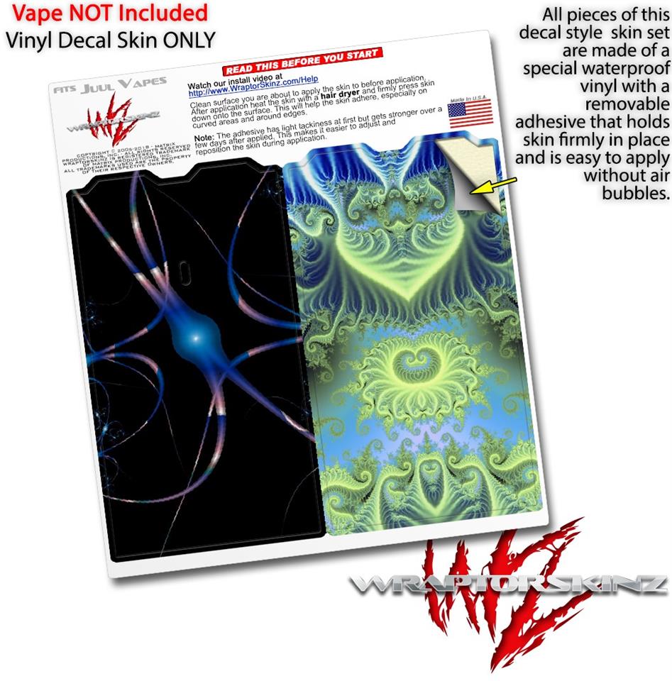 WraptorSkinz® skin wraps are printed using superb photo quality designs and vibrant colors printed with special fade resistant inks that last even in direct sun for years. WraptorSkinz are a composite of two layers of commercial grade materials. The bottom layer is a soft, flexible vinyl with a special removable adhesive that is easily positioned, applied without air bubbles. Next we print the bottom layer with UV protected, fade resistant inks that deliver superb photo quality designs in vibrant colors. Finally we bond a professional grade laminate over the entire skin adding a glossy protective finish. This product is not affiliated with or endorsed by the Juul brand.