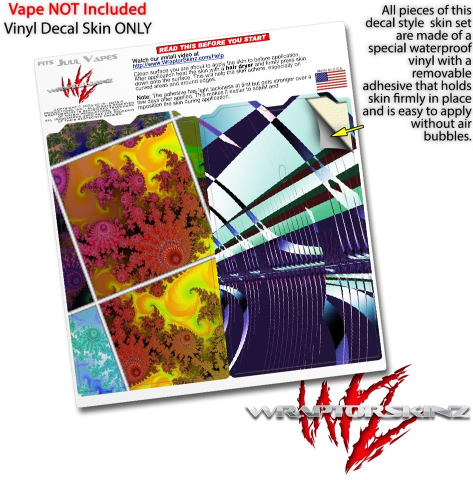 WraptorSkinz® skin wraps are printed using superb photo quality designs and vibrant colors printed with special fade resistant inks that last even in direct sun for years. WraptorSkinz are a composite of two layers of commercial grade materials. The bottom layer is a soft, flexible vinyl with a special removable adhesive that is easily positioned, applied without air bubbles. Next we print the bottom layer with UV protected, fade resistant inks that deliver superb photo quality designs in vibrant colors. Finally we bond a professional grade laminate over the entire skin adding a glossy protective finish. This product is not affiliated with or endorsed by the Juul brand.