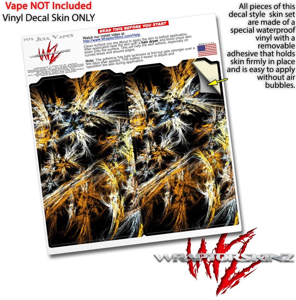 WraptorSkinz® skin wraps are printed using superb photo quality designs and vibrant colors printed with special fade resistant inks that last even in direct sun for years. WraptorSkinz are a composite of two layers of commercial grade materials. The bottom layer is a soft, flexible vinyl with a special removable adhesive that is easily positioned, applied without air bubbles. Next we print the bottom layer with UV protected, fade resistant inks that deliver superb photo quality designs in vibrant colors. Finally we bond a professional grade laminate over the entire skin adding a glossy protective finish. This product is not affiliated with or endorsed by the Juul brand.