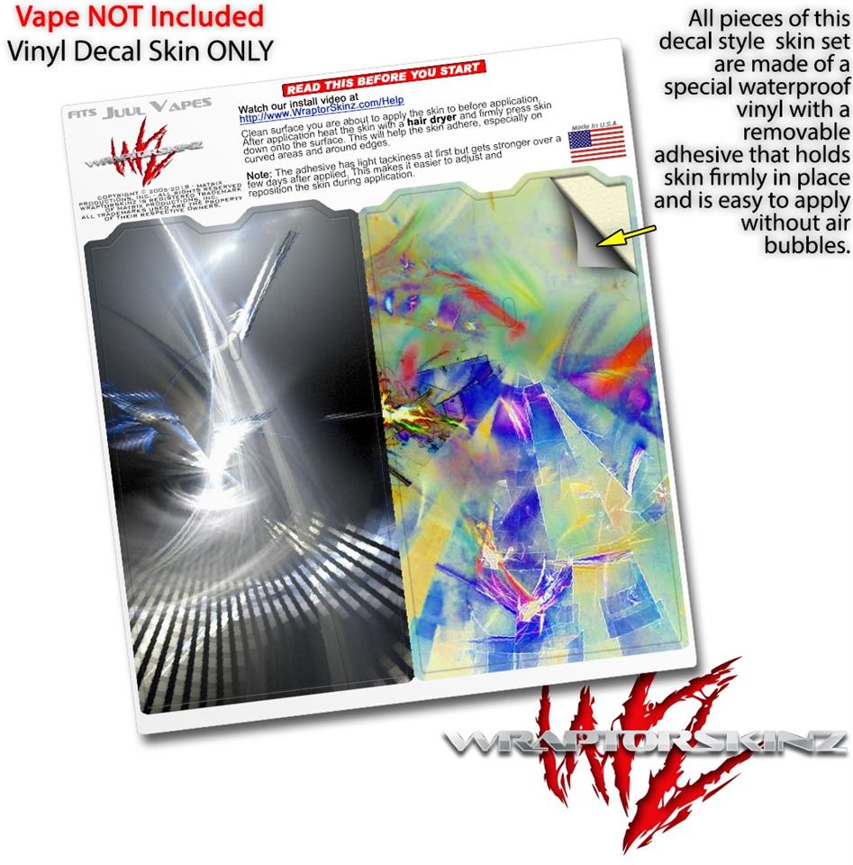 WraptorSkinz® skin wraps are printed using superb photo quality designs and vibrant colors printed with special fade resistant inks that last even in direct sun for years. WraptorSkinz are a composite of two layers of commercial grade materials. The bottom layer is a soft, flexible vinyl with a special removable adhesive that is easily positioned, applied without air bubbles. Next we print the bottom layer with UV protected, fade resistant inks that deliver superb photo quality designs in vibrant colors. Finally we bond a professional grade laminate over the entire skin adding a glossy protective finish. This product is not affiliated with or endorsed by the Juul brand.