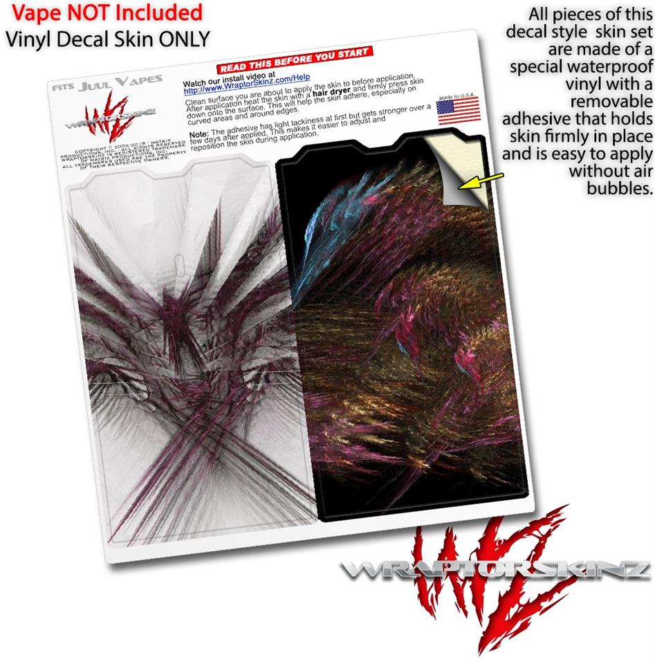 WraptorSkinz® skin wraps are printed using superb photo quality designs and vibrant colors printed with special fade resistant inks that last even in direct sun for years. WraptorSkinz are a composite of two layers of commercial grade materials. The bottom layer is a soft, flexible vinyl with a special removable adhesive that is easily positioned, applied without air bubbles. Next we print the bottom layer with UV protected, fade resistant inks that deliver superb photo quality designs in vibrant colors. Finally we bond a professional grade laminate over the entire skin adding a glossy protective finish. This product is not affiliated with or endorsed by the Juul brand.