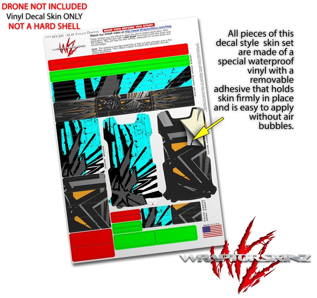 WraptorSkinz® skin wraps are printed using superb photo quality designs and vibrant colors printed with special fade resistant inks that last even in direct sun for years. WraptorSkinz are a composite of two layers of commercial grade materials. The bottom layer is a soft, flexible vinyl with a special removable adhesive that is easily positioned, applied without air bubbles. Next we print the bottom layer with UV protected, fade resistant inks that deliver superb photo quality designs in vibrant colors. Finally we bond a professional grade laminate over the entire skin adding a glossy protective finish. This product is not affiliated with or endorsed by the Ryze or DJI brand.