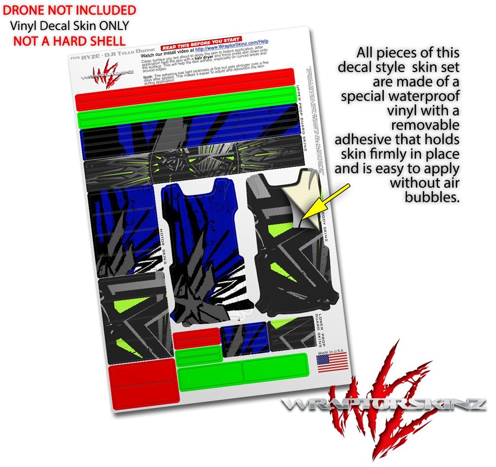WraptorSkinz® skin wraps are printed using superb photo quality designs and vibrant colors printed with special fade resistant inks that last even in direct sun for years. WraptorSkinz are a composite of two layers of commercial grade materials. The bottom layer is a soft, flexible vinyl with a special removable adhesive that is easily positioned, applied without air bubbles. Next we print the bottom layer with UV protected, fade resistant inks that deliver superb photo quality designs in vibrant colors. Finally we bond a professional grade laminate over the entire skin adding a glossy protective finish. This product is not affiliated with or endorsed by the Ryze or DJI brand.
