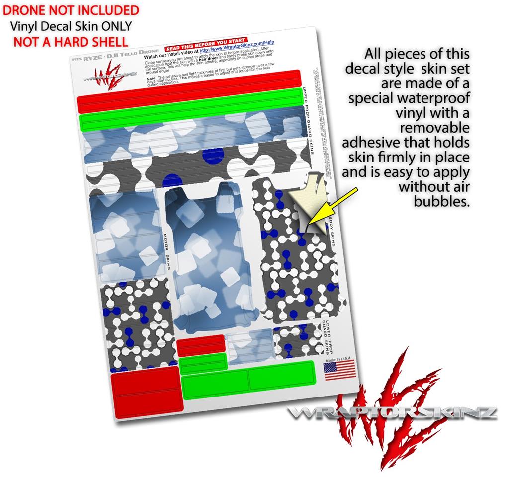 WraptorSkinz® skin wraps are printed using superb photo quality designs and vibrant colors printed with special fade resistant inks that last even in direct sun for years. WraptorSkinz are a composite of two layers of commercial grade materials. The bottom layer is a soft, flexible vinyl with a special removable adhesive that is easily positioned, applied without air bubbles. Next we print the bottom layer with UV protected, fade resistant inks that deliver superb photo quality designs in vibrant colors. Finally we bond a professional grade laminate over the entire skin adding a glossy protective finish. This product is not affiliated with or endorsed by the Ryze or DJI brand.
