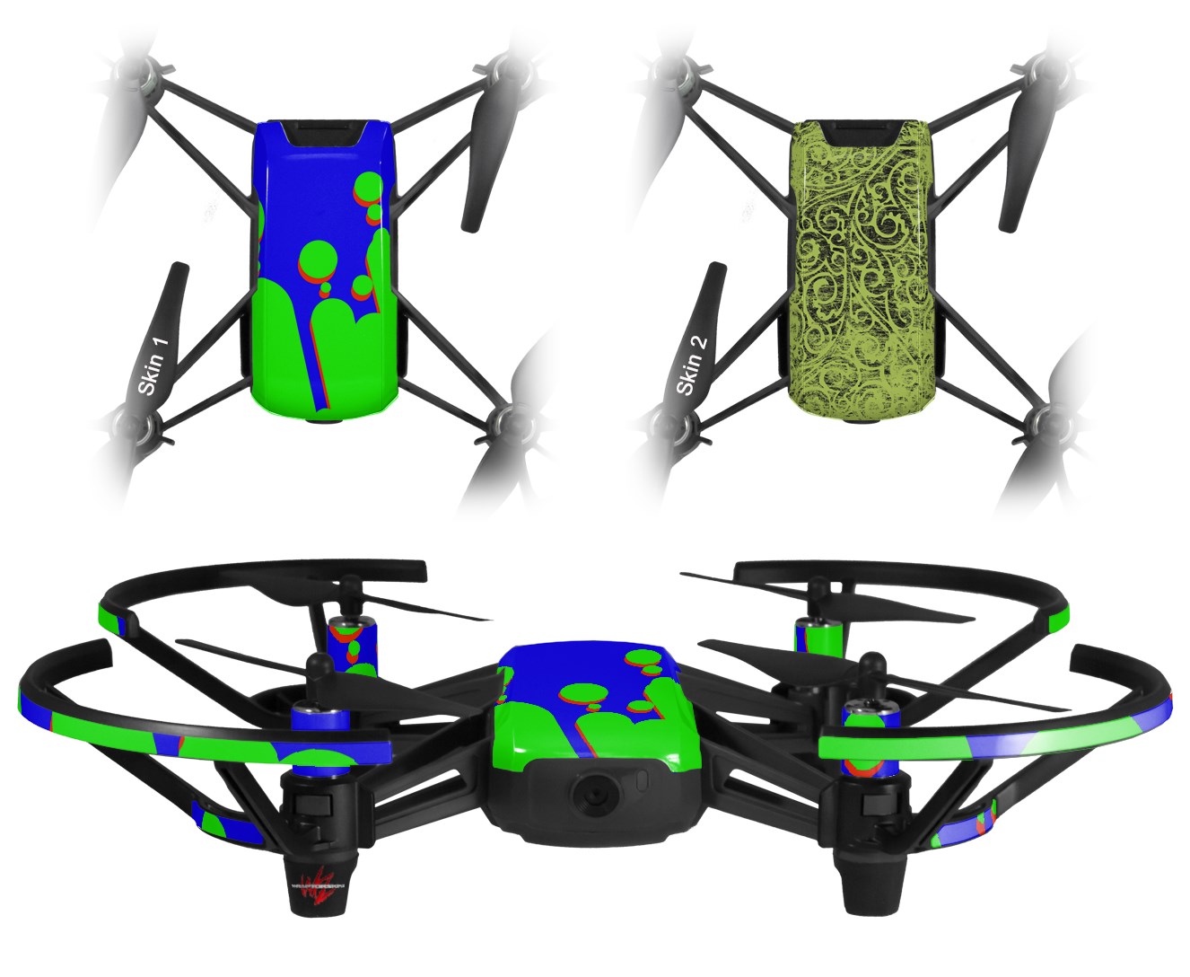 Skin Decal Wrap 2 Pack for DJI Ryze Tello Drone Drip Blue Green Red DRONE NOT INCLUDED