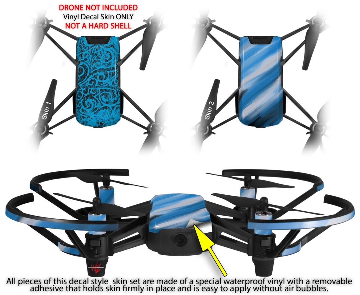 Skin Decal Wrap 2 Pack for DJI Ryze Tello Drone Folder Doodles Blue Medium DRONE NOT INCLUDED