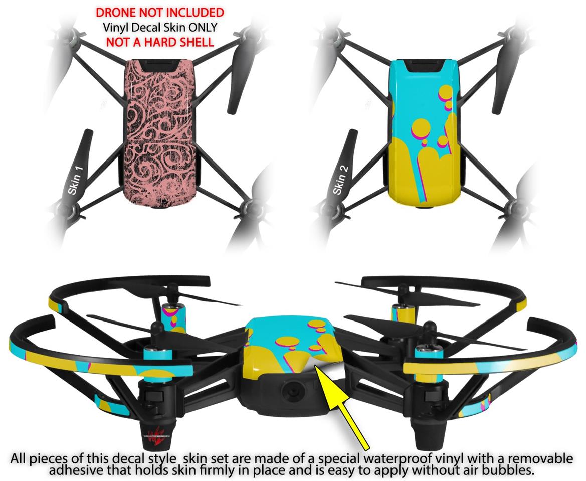 Skin Decal Wrap 2 Pack for DJI Ryze Tello Drone Folder Doodles Pink DRONE NOT INCLUDED