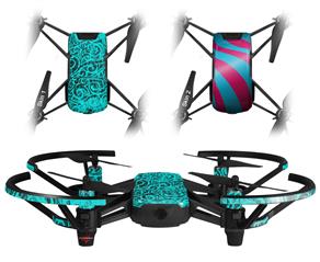 Skin Decal Wrap 2 Pack for DJI Ryze Tello Drone Folder Doodles Neon Teal DRONE NOT INCLUDED