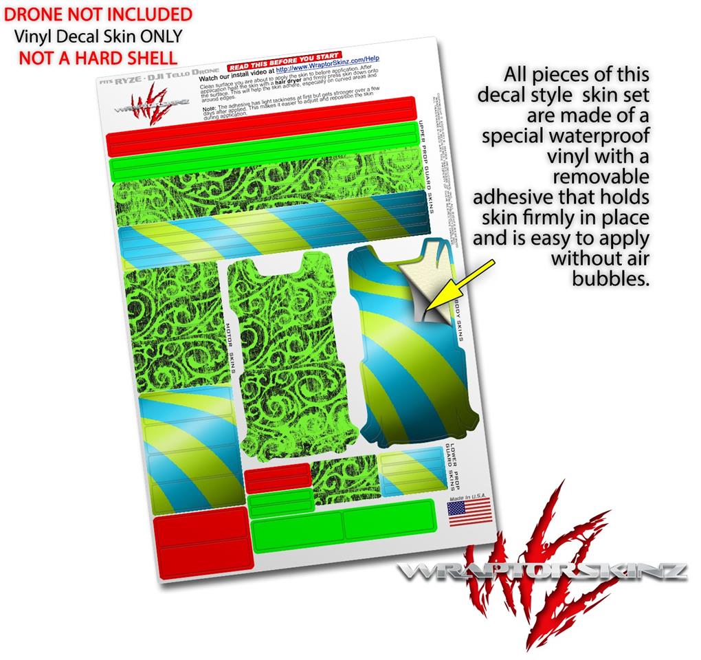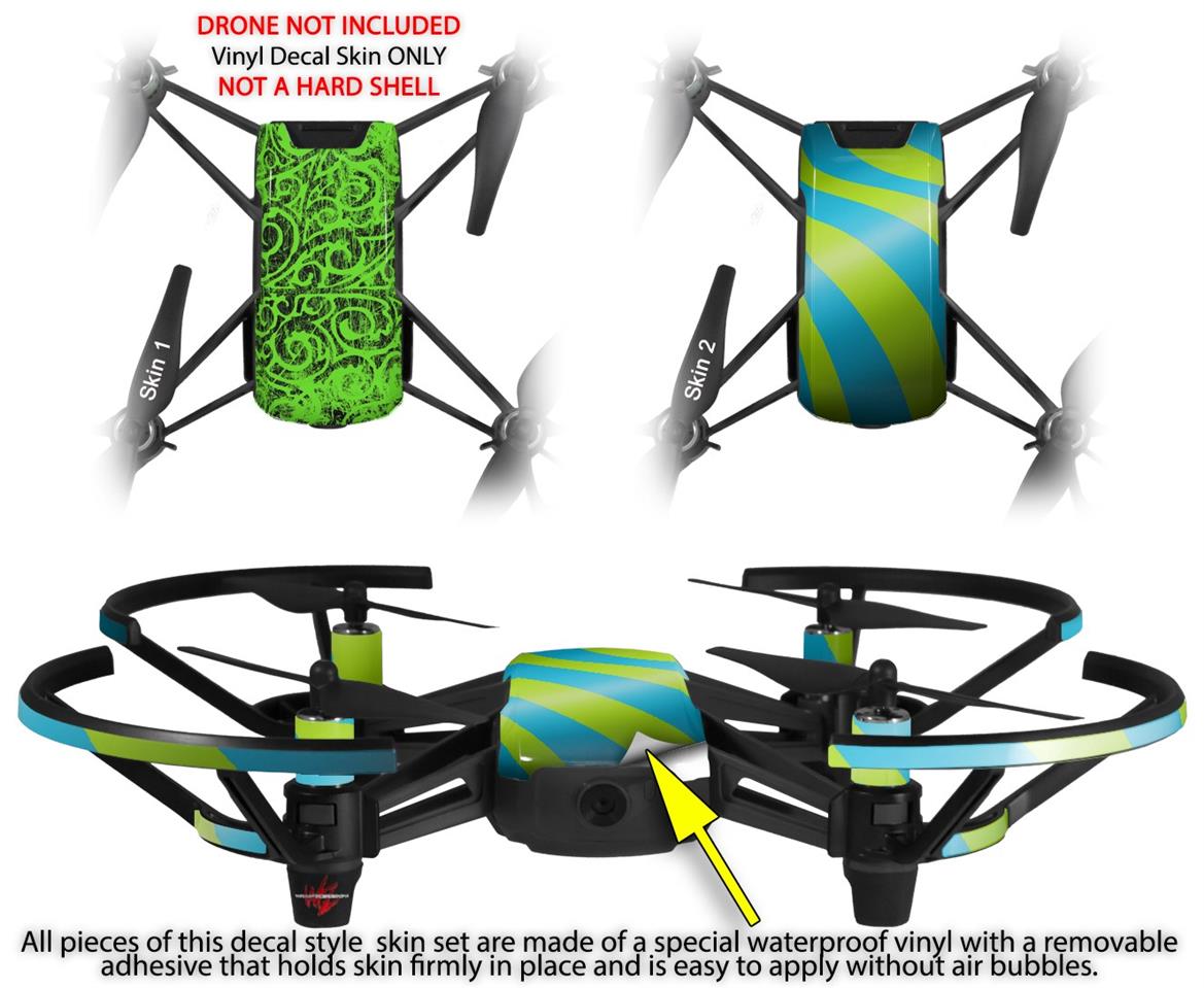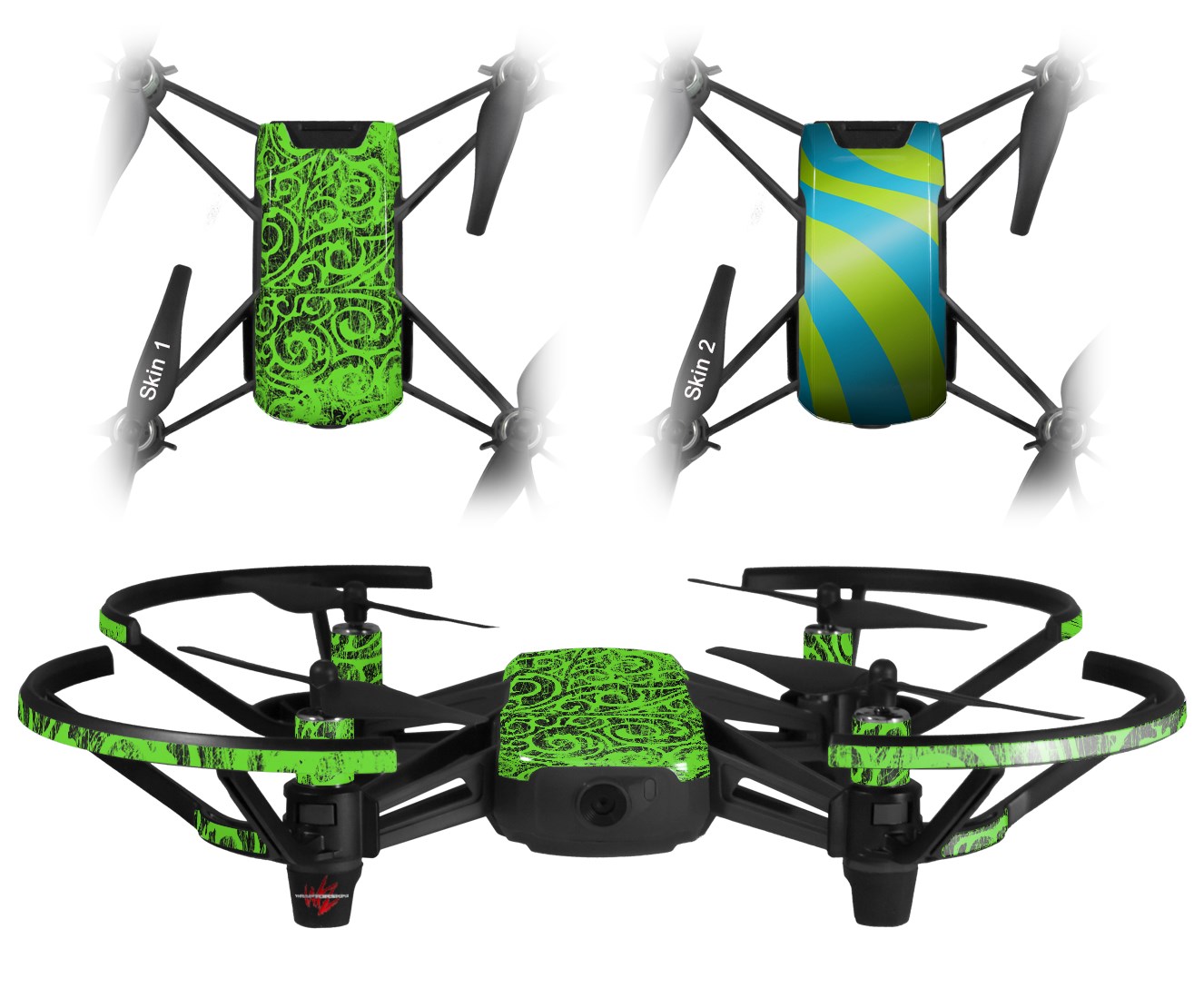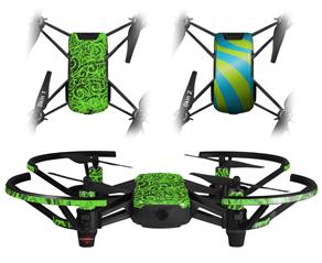 Skin Decal Wrap 2 Pack for DJI Ryze Tello Drone Folder Doodles Neon Green DRONE NOT INCLUDED