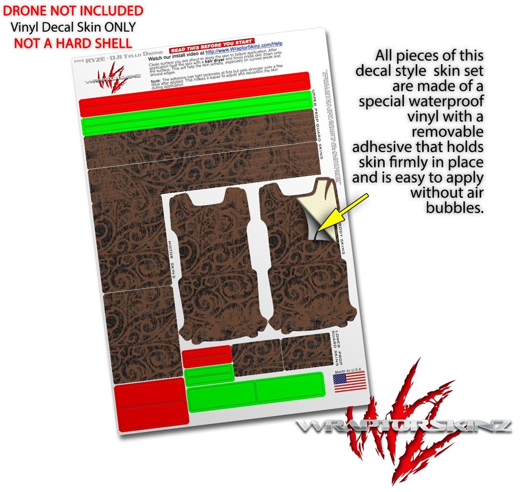 Skin Decal Wrap 2 Pack for DJI Ryze Tello Drone Folder Doodles Chocolate Brown DRONE NOT INCLUDED