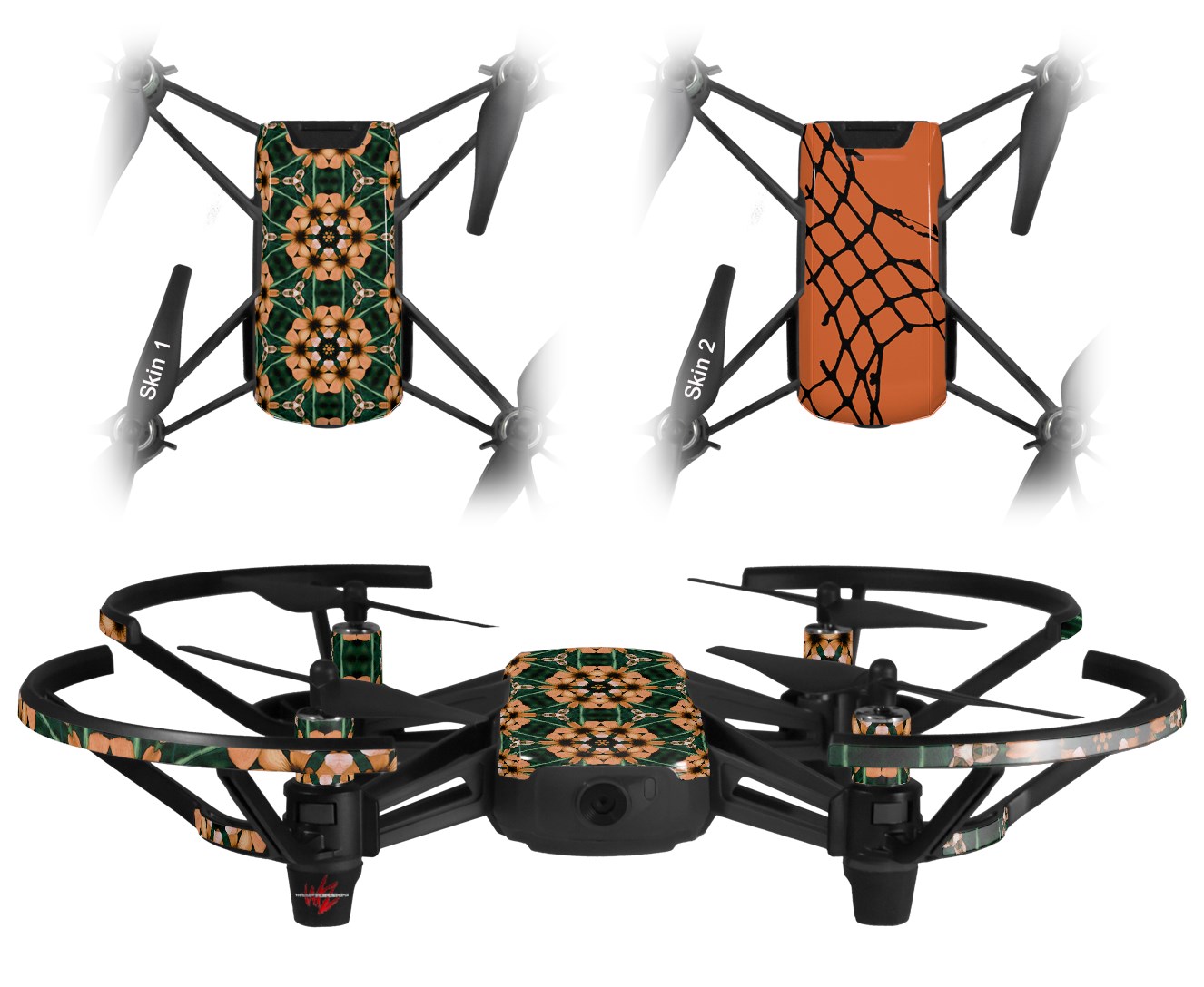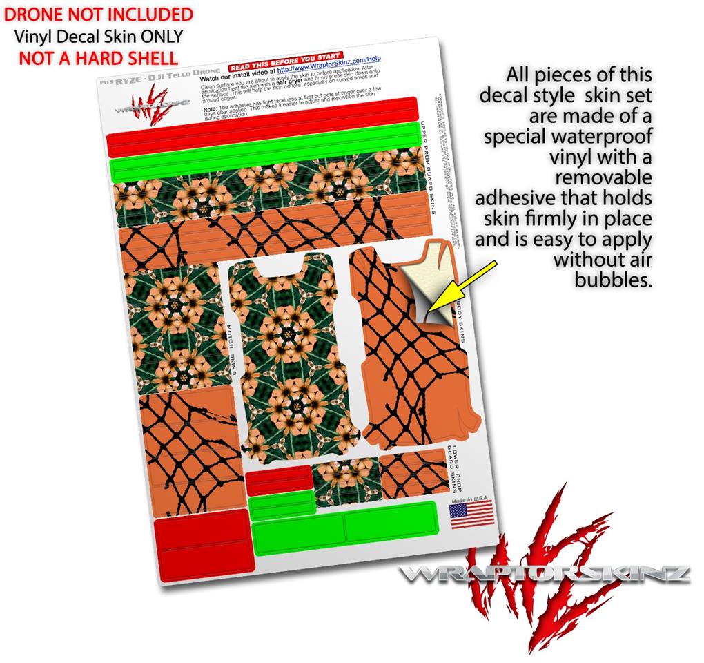 Skin Decal Wrap 2 Pack for DJI Ryze Tello Drone Floral Pattern Orange DRONE NOT INCLUDED