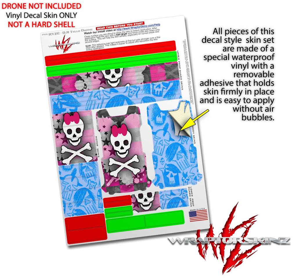 Skin Decal Wrap 2 Pack for DJI Ryze Tello Drone Princess Skull Heart Pink DRONE NOT INCLUDED
