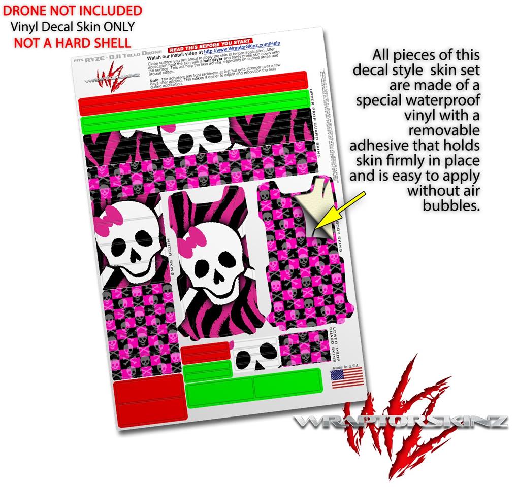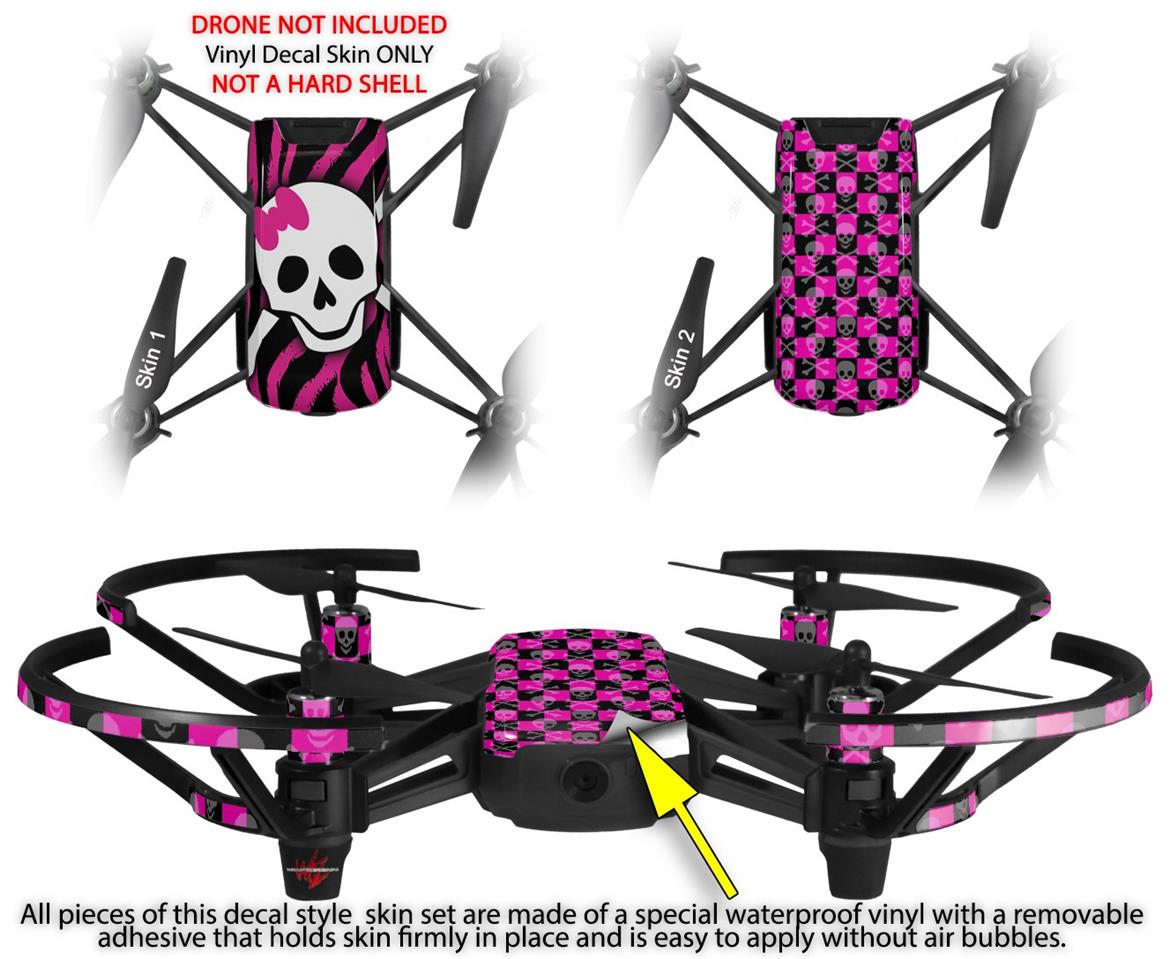 Skin Decal Wrap 2 Pack for DJI Ryze Tello Drone Pink Zebra Skull DRONE NOT INCLUDED