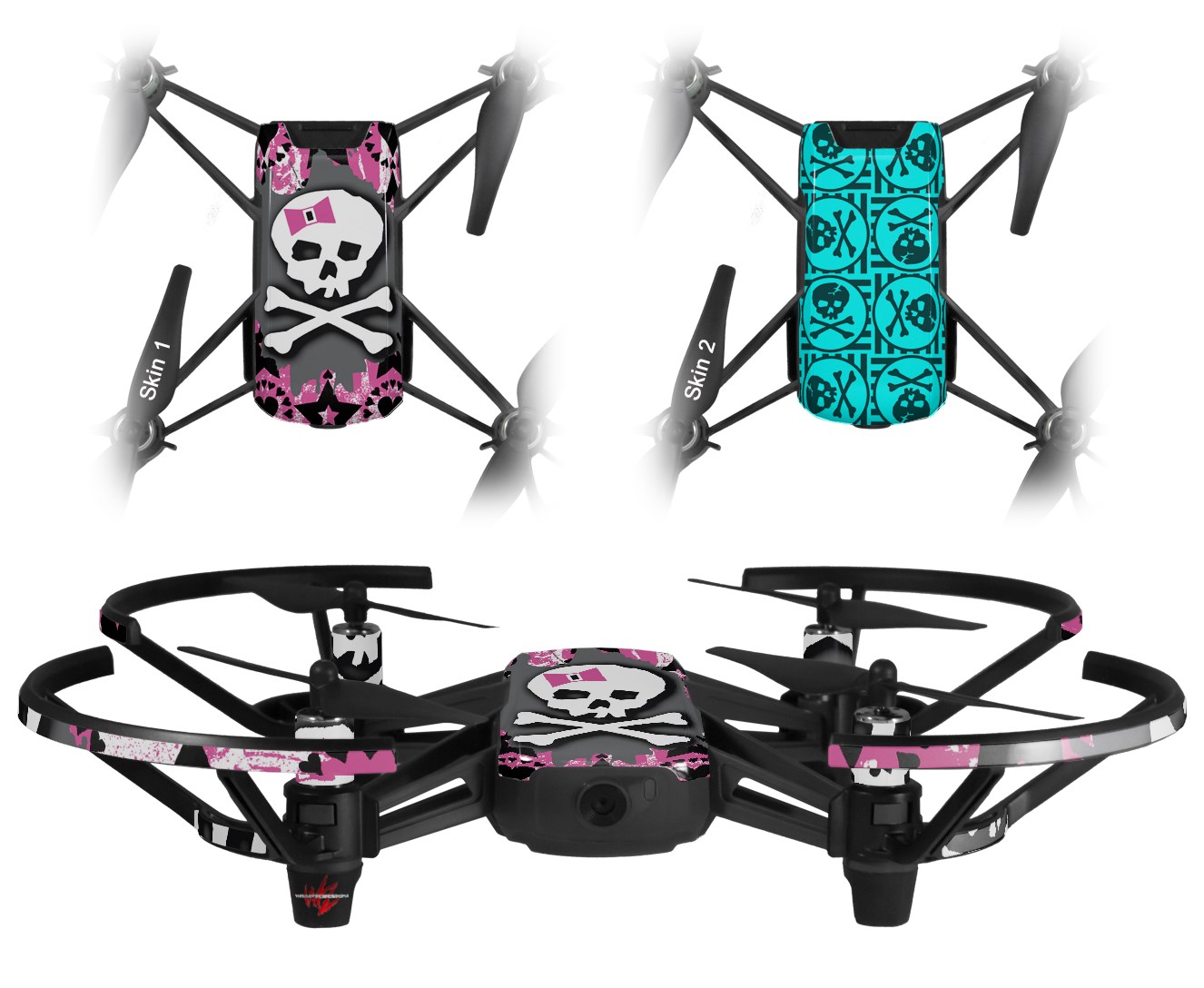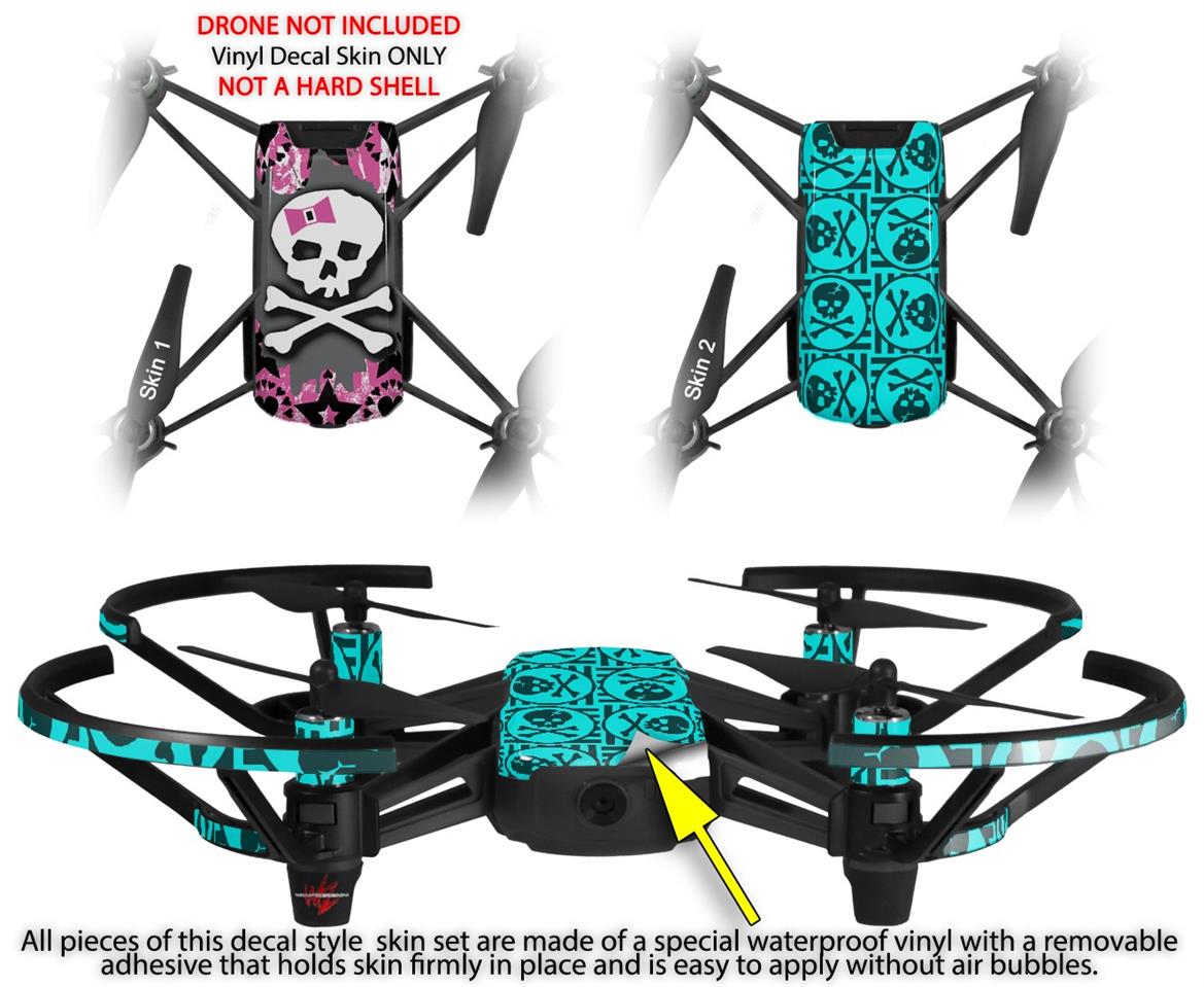 Skin Decal Wrap 2 Pack for DJI Ryze Tello Drone Pink Bow Skull DRONE NOT INCLUDED