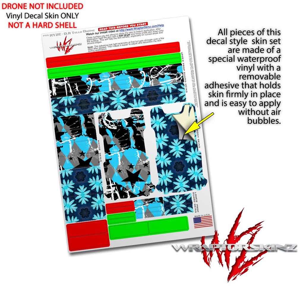 WraptorSkinz® skin wraps are printed using superb photo quality designs and vibrant colors printed with special fade resistant inks that last even in direct sun for years. WraptorSkinz are a composite of two layers of commercial grade materials. The bottom layer is a soft, flexible vinyl with a special removable adhesive that is easily positioned, applied without air bubbles. Next we print the bottom layer with UV protected, fade resistant inks that deliver superb photo quality designs in vibrant colors. Finally we bond a professional grade laminate over the entire skin adding a glossy protective finish. This product is not affiliated with or endorsed by the Ryze or DJI brand.