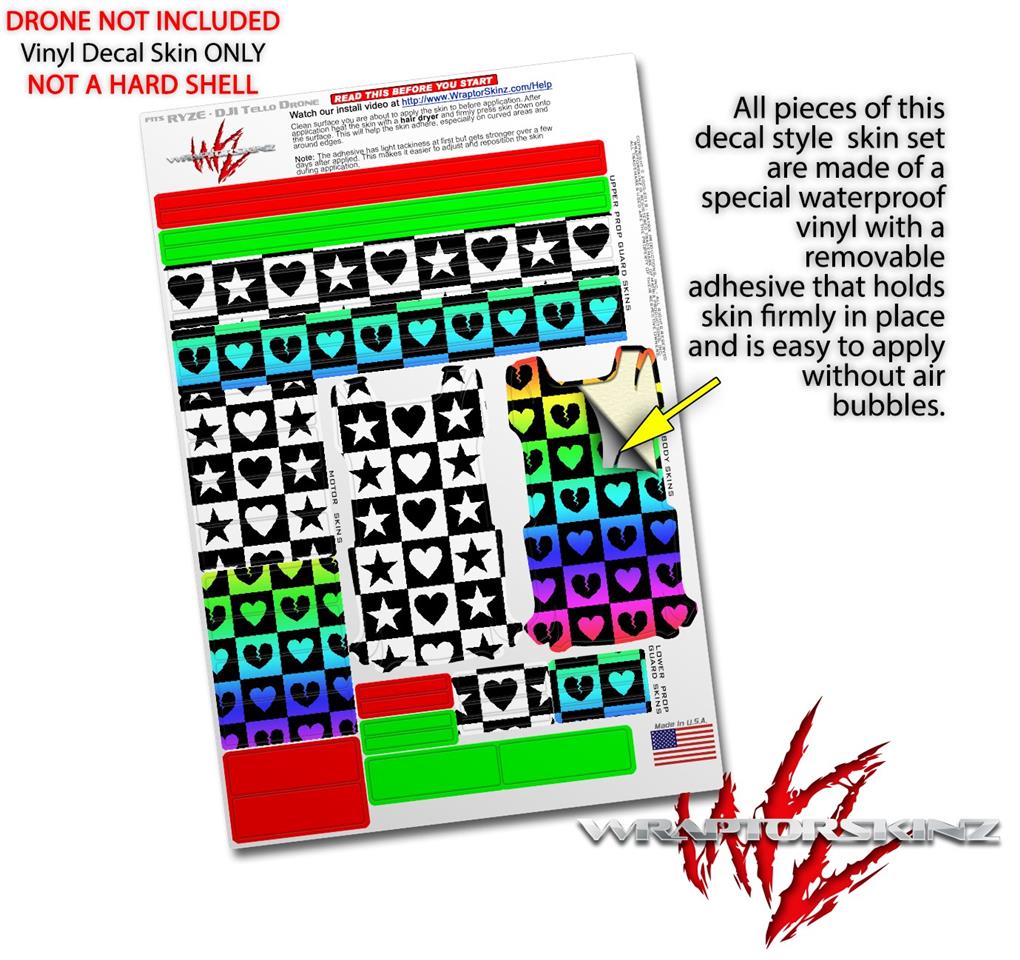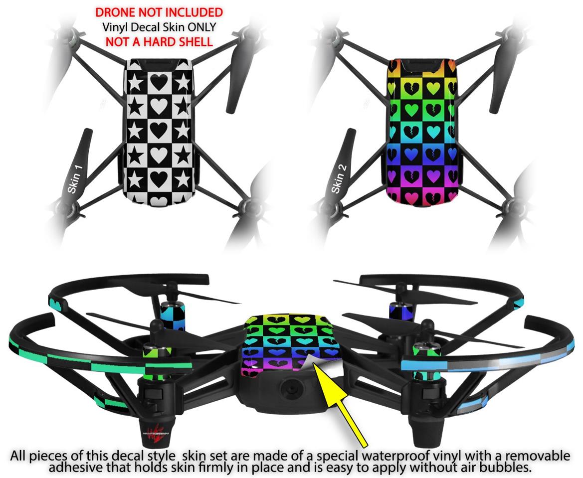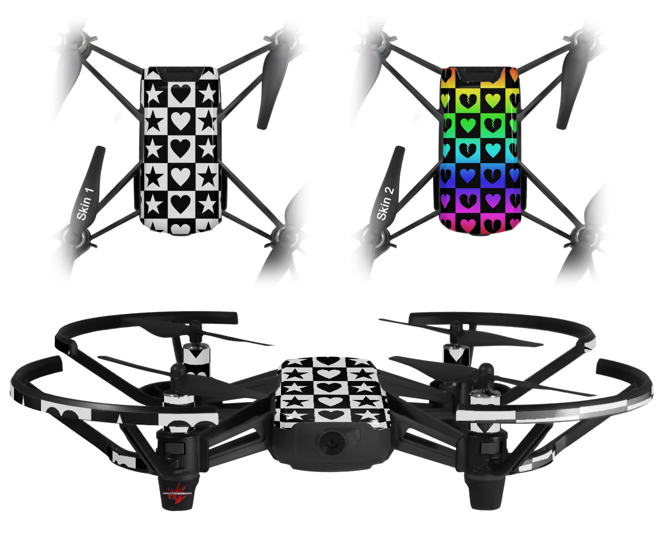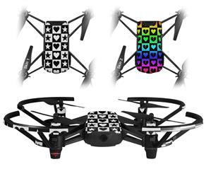 Skin Decal Wrap 2 Pack for DJI Ryze Tello Drone Hearts And Stars Black and White DRONE NOT INCLUDED