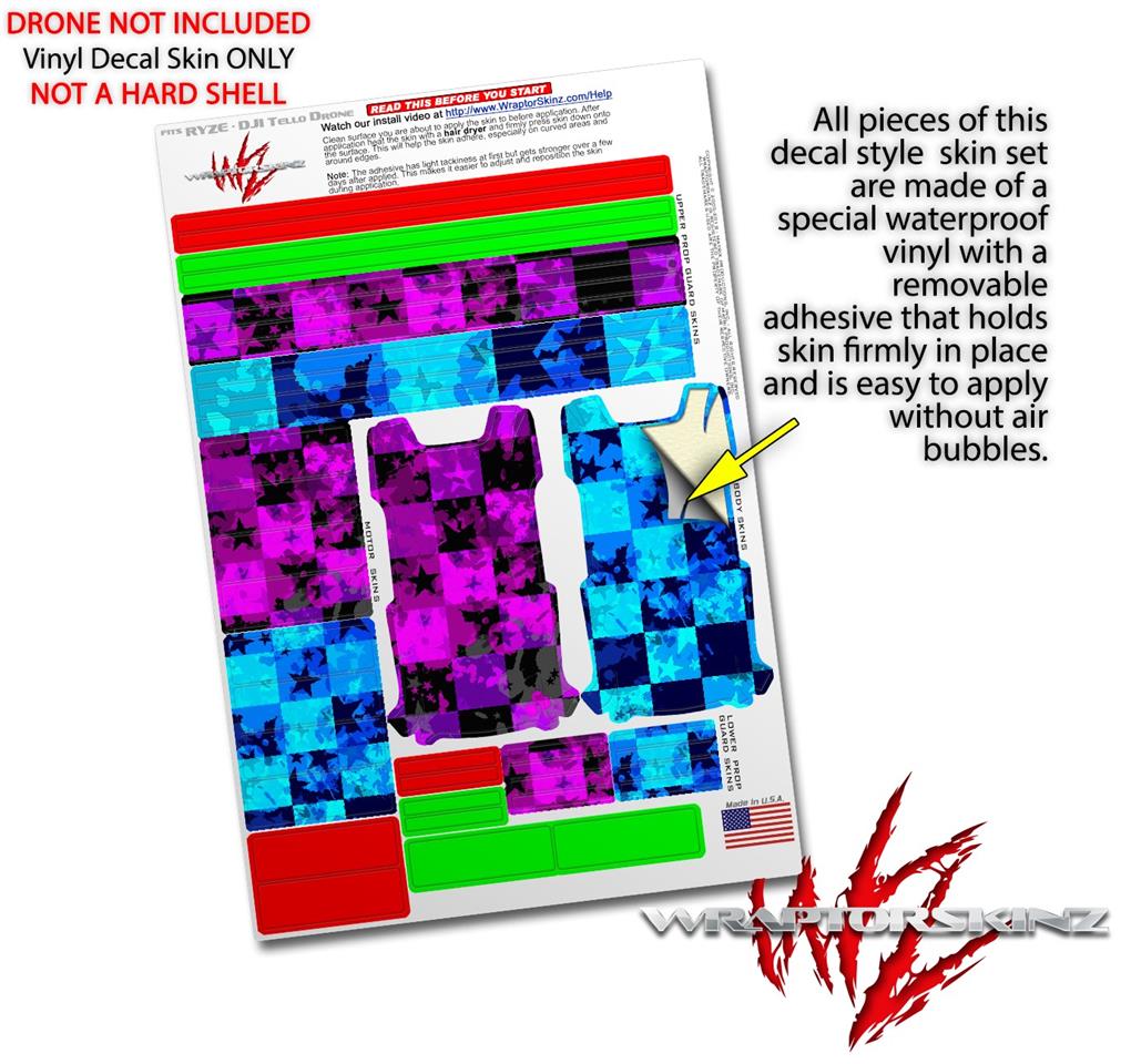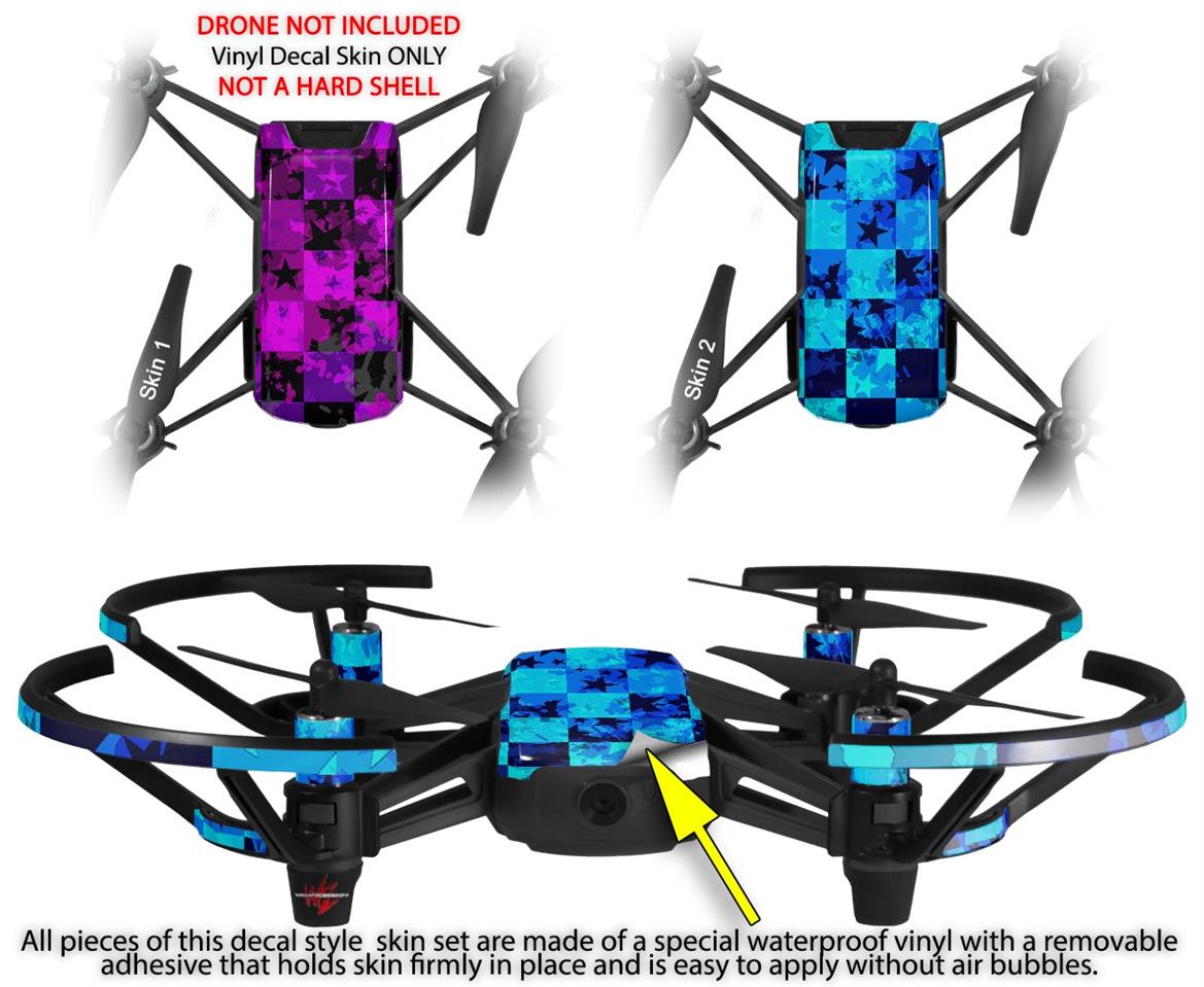 Skin Decal Wrap 2 Pack for DJI Ryze Tello Drone Purple Star Checkerboard DRONE NOT INCLUDED