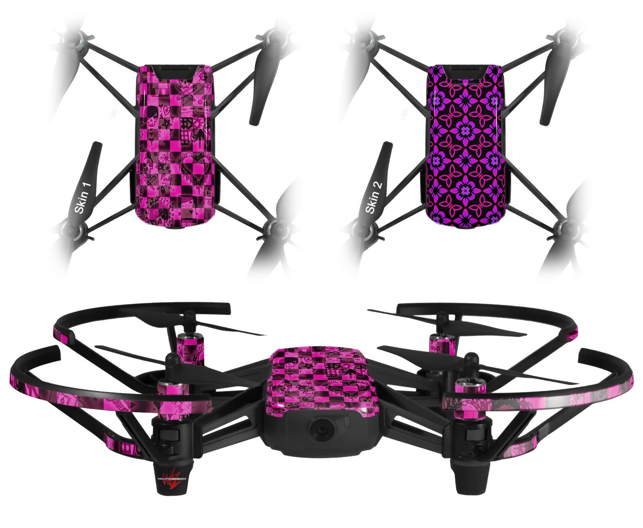 Skin Decal Wrap 2 Pack for DJI Ryze Tello Drone Pink Checkerboard Sketches DRONE NOT INCLUDED
