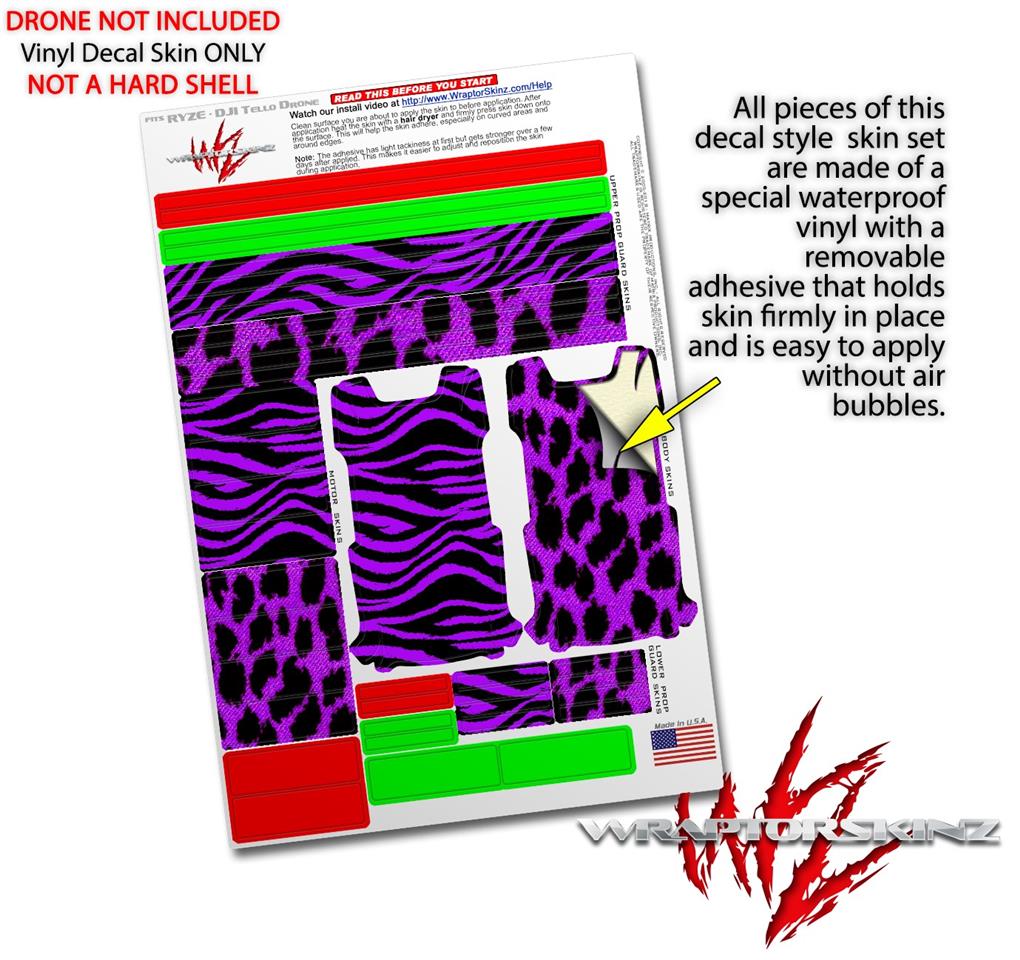 Skin Decal Wrap 2 Pack for DJI Ryze Tello Drone Purple Zebra DRONE NOT INCLUDED