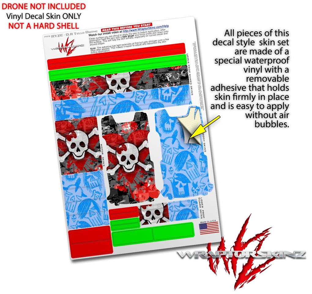 Skin Decal Wrap 2 Pack for DJI Ryze Tello Drone Emo Skull Bones DRONE NOT INCLUDED