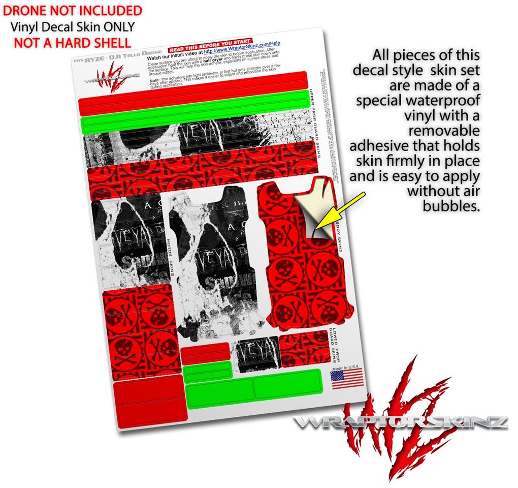 Skin Decal Wrap 2 Pack for DJI Ryze Tello Drone Urban Skull DRONE NOT INCLUDED