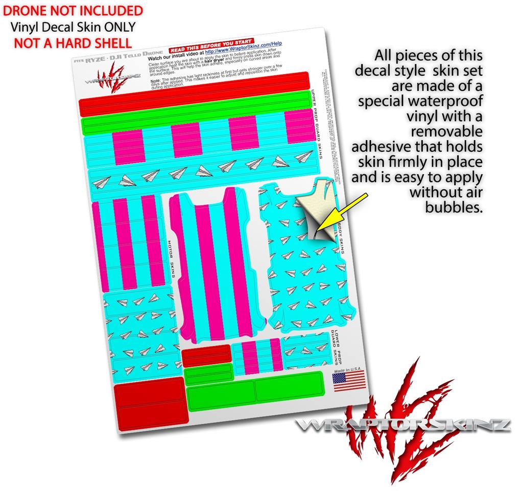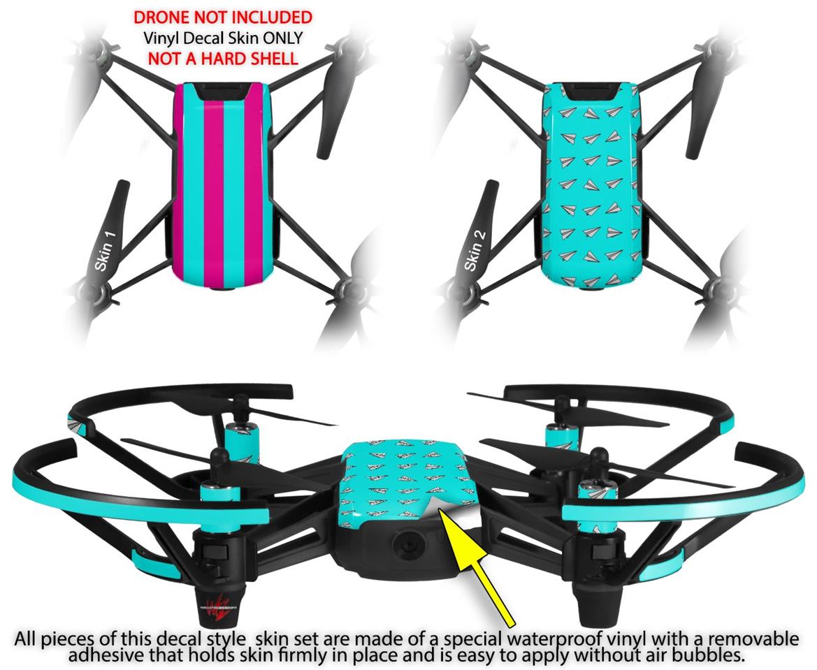 Skin Decal Wrap 2 Pack for DJI Ryze Tello Drone Psycho Stripes Neon Teal and Hot Pink DRONE NOT INCLUDED