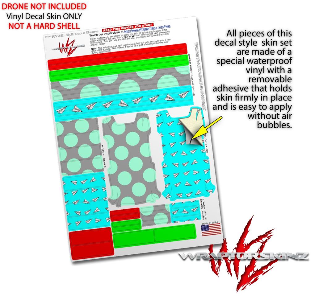 Skin Decal Wrap 2 Pack for DJI Ryze Tello Drone Kearas Polka Dots Mint And Gray DRONE NOT INCLUDED