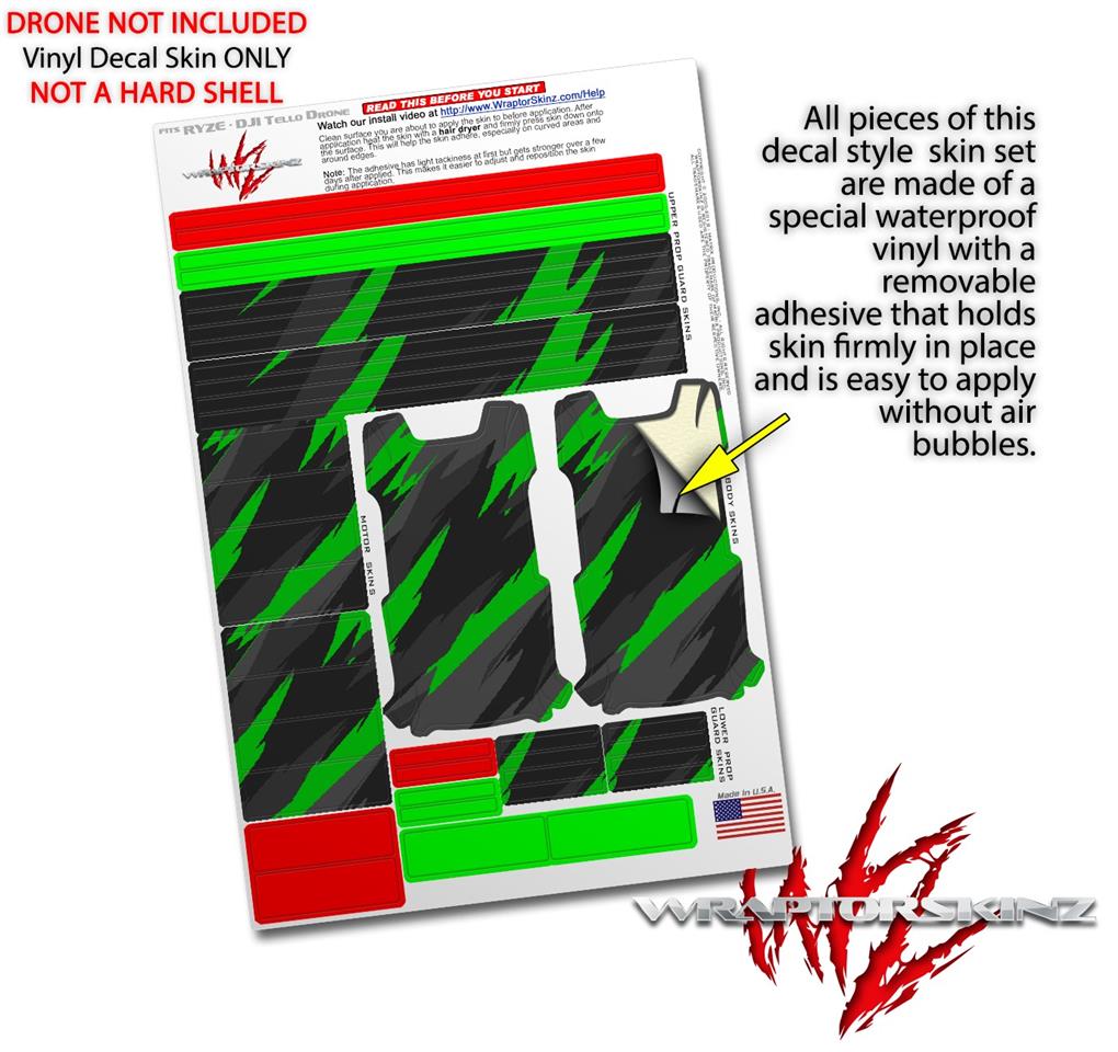 Skin Decal Wrap 2 Pack for DJI Ryze Tello Drone Jagged Camo Green DRONE NOT INCLUDED