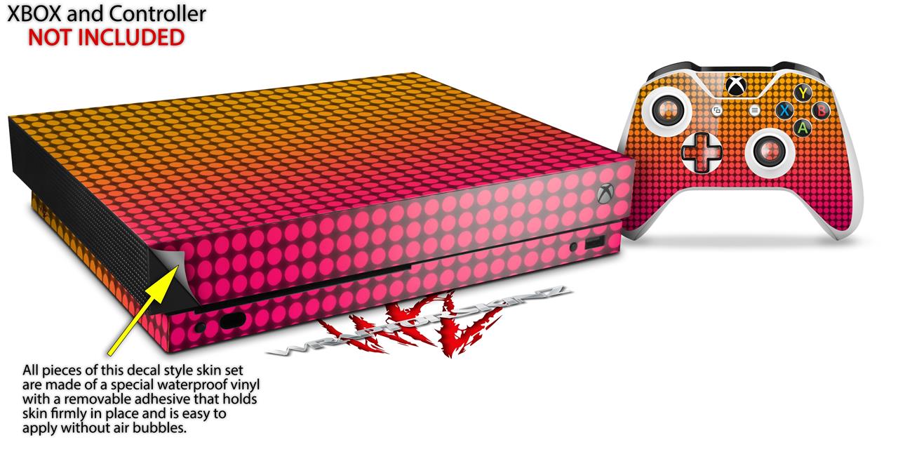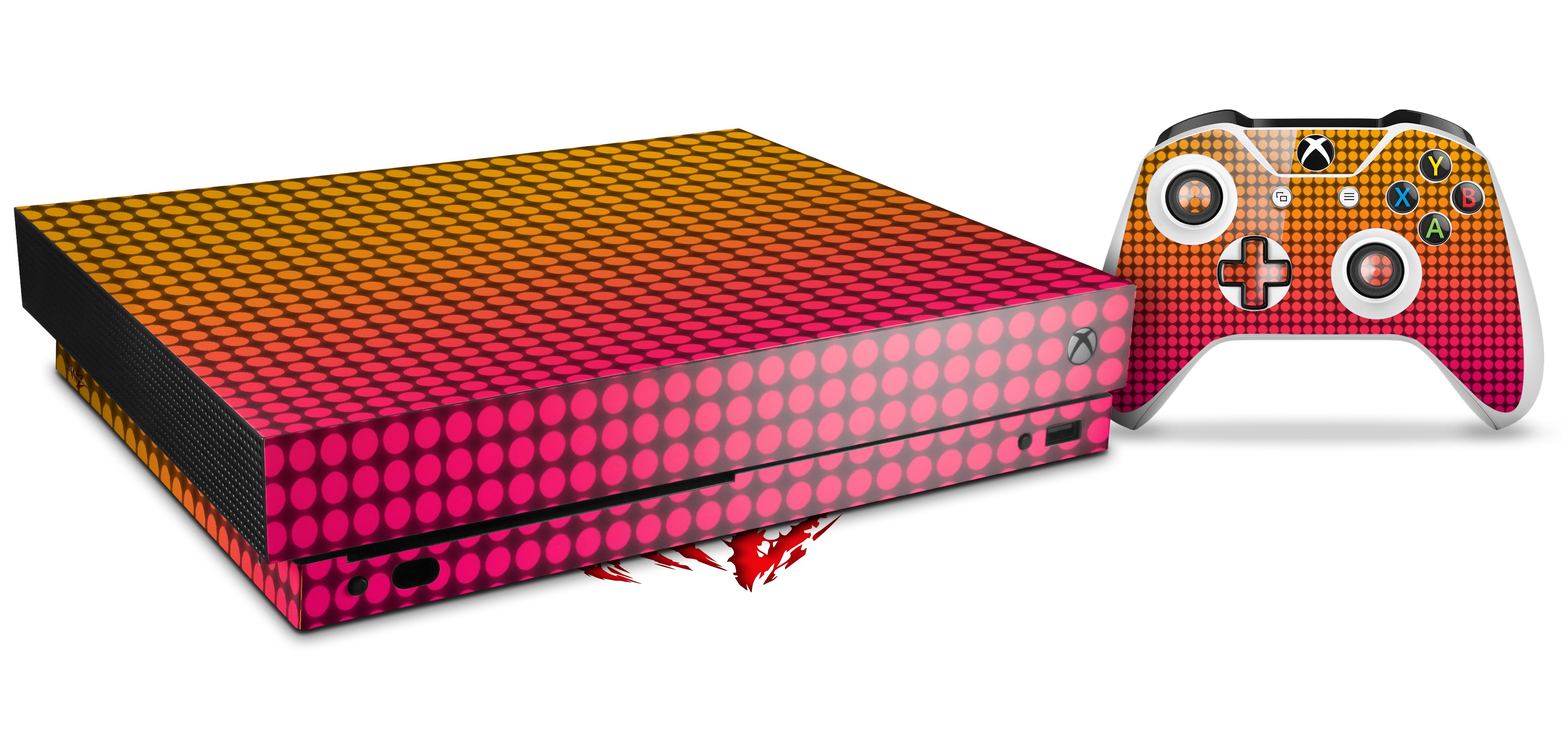 Skin Wrap for XBOX One X Console and Controller Faded Dots Hot Pink Orange