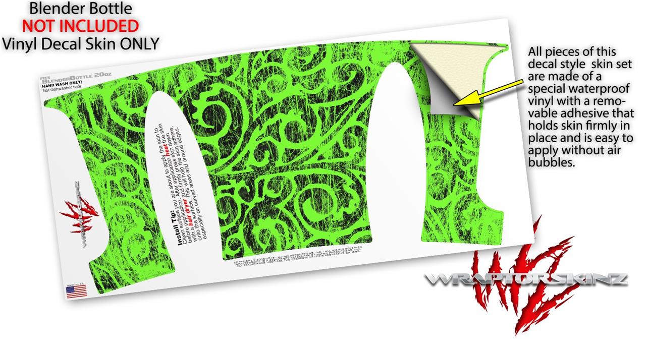 Decal Style Skin Wrap works with Blender Bottle 20oz Folder Doodles Neon Green (BOTTLE NOT INCLUDED)
