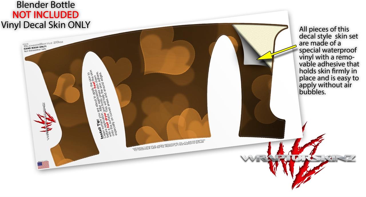 Decal Style Skin Wrap works with Blender Bottle 20oz Bokeh Hearts Orange (BOTTLE NOT INCLUDED)