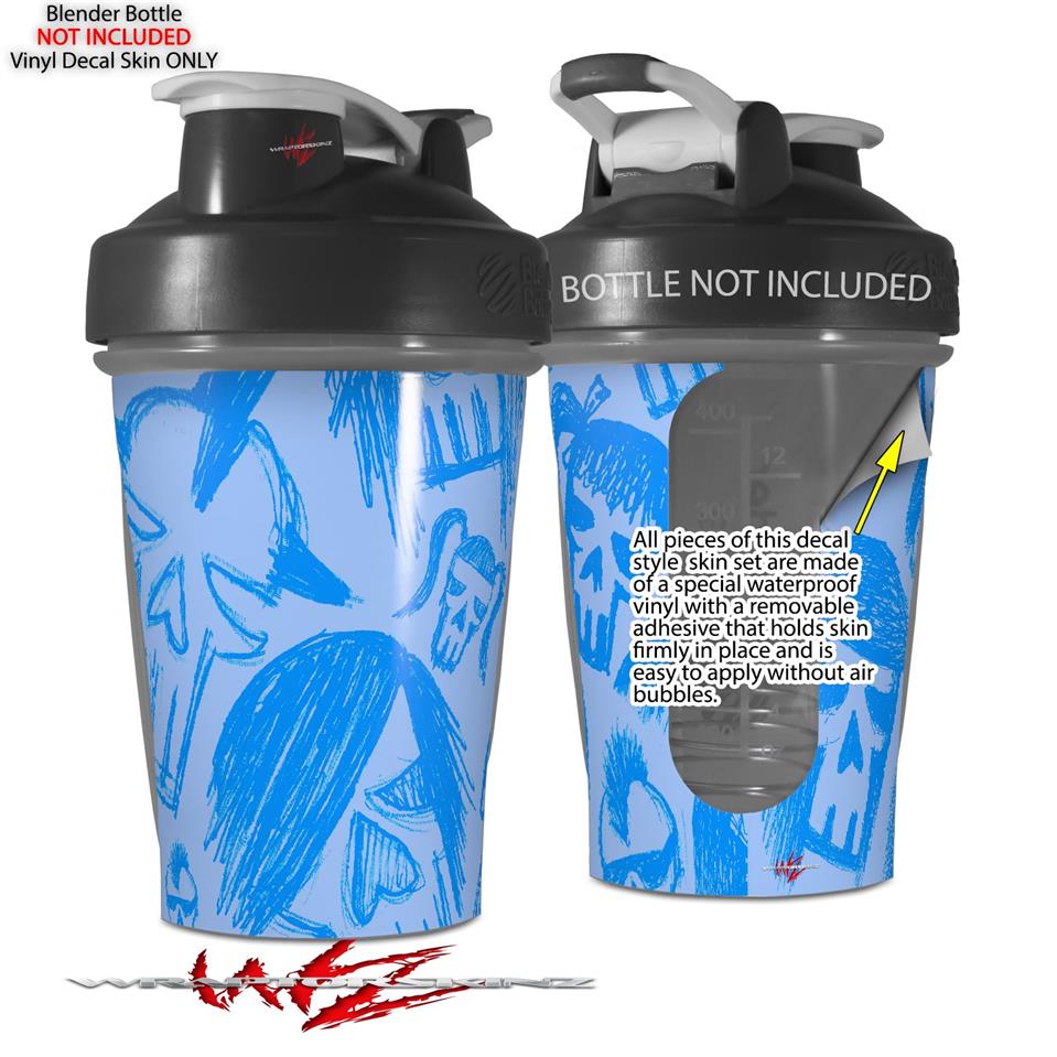 Decal Style Skin Wrap works with Blender Bottle 20oz Skull Sketches Blue (BOTTLE NOT INCLUDED)