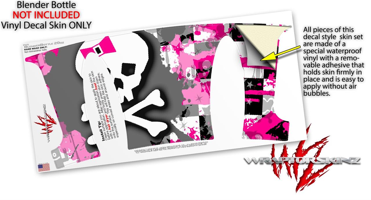 Decal Style Skin Wrap works with Blender Bottle 20oz Girly Pink Bow Skull (BOTTLE NOT INCLUDED)