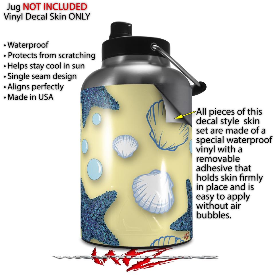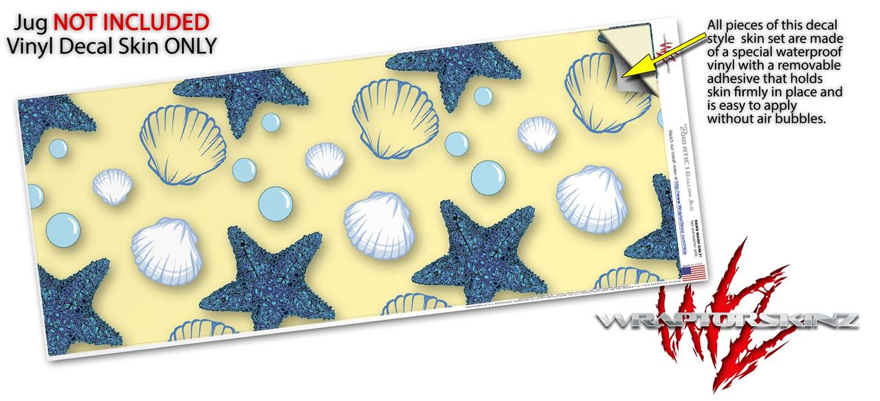 Skin Decal Wrap for 2017 RTIC One Gallon Jug Starfish and Sea Shells Yellow Sunshine (Jug NOT INCLUDED) by WraptorSkinz