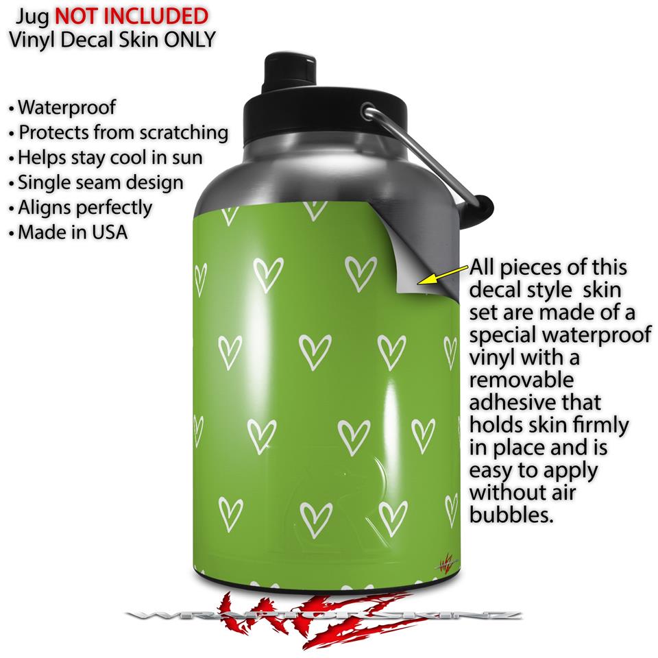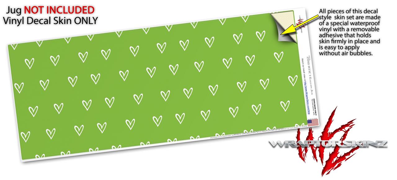 Skin Decal Wrap for 2017 RTIC One Gallon Jug Hearts Green On White (Jug NOT INCLUDED) by WraptorSkinz